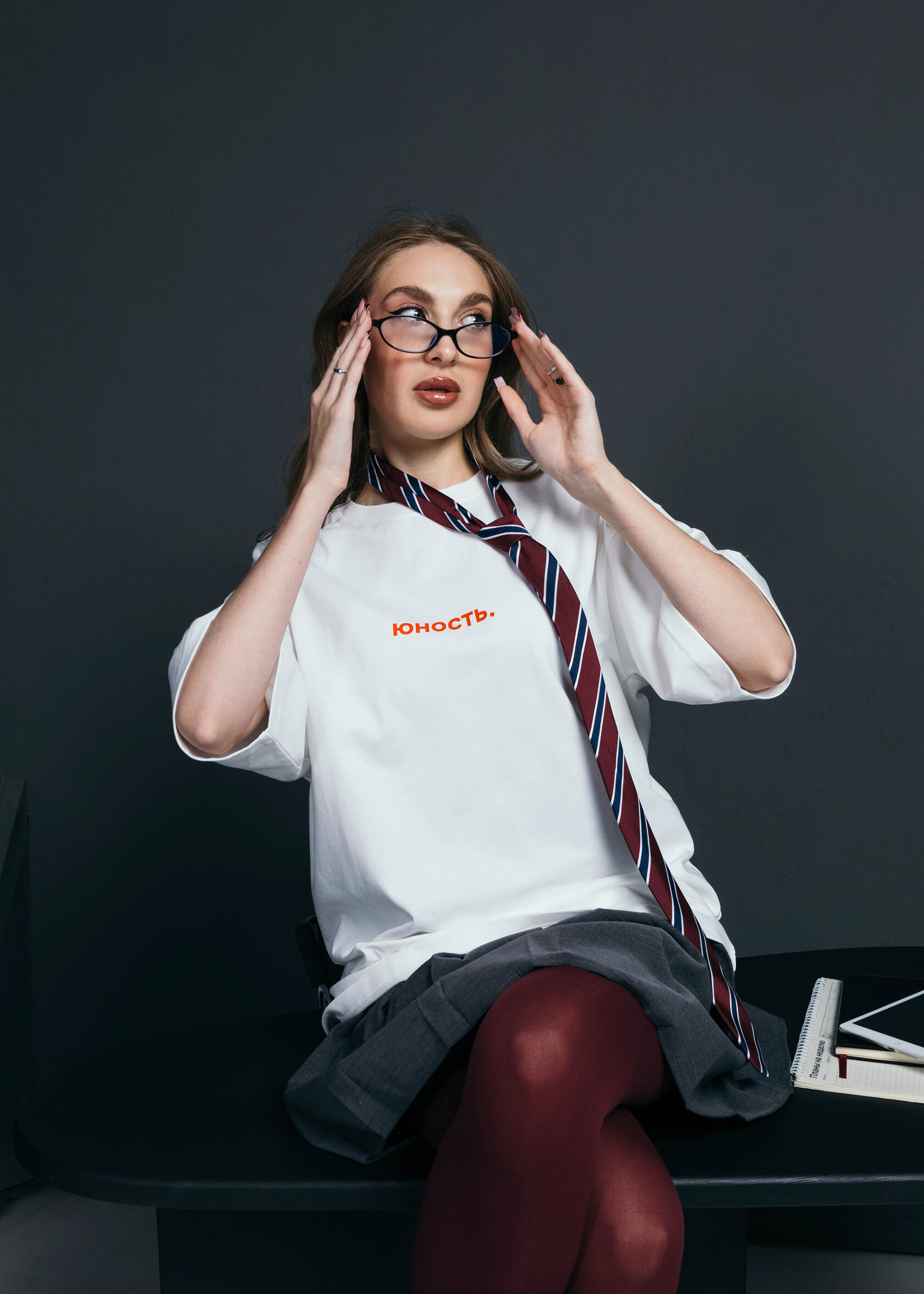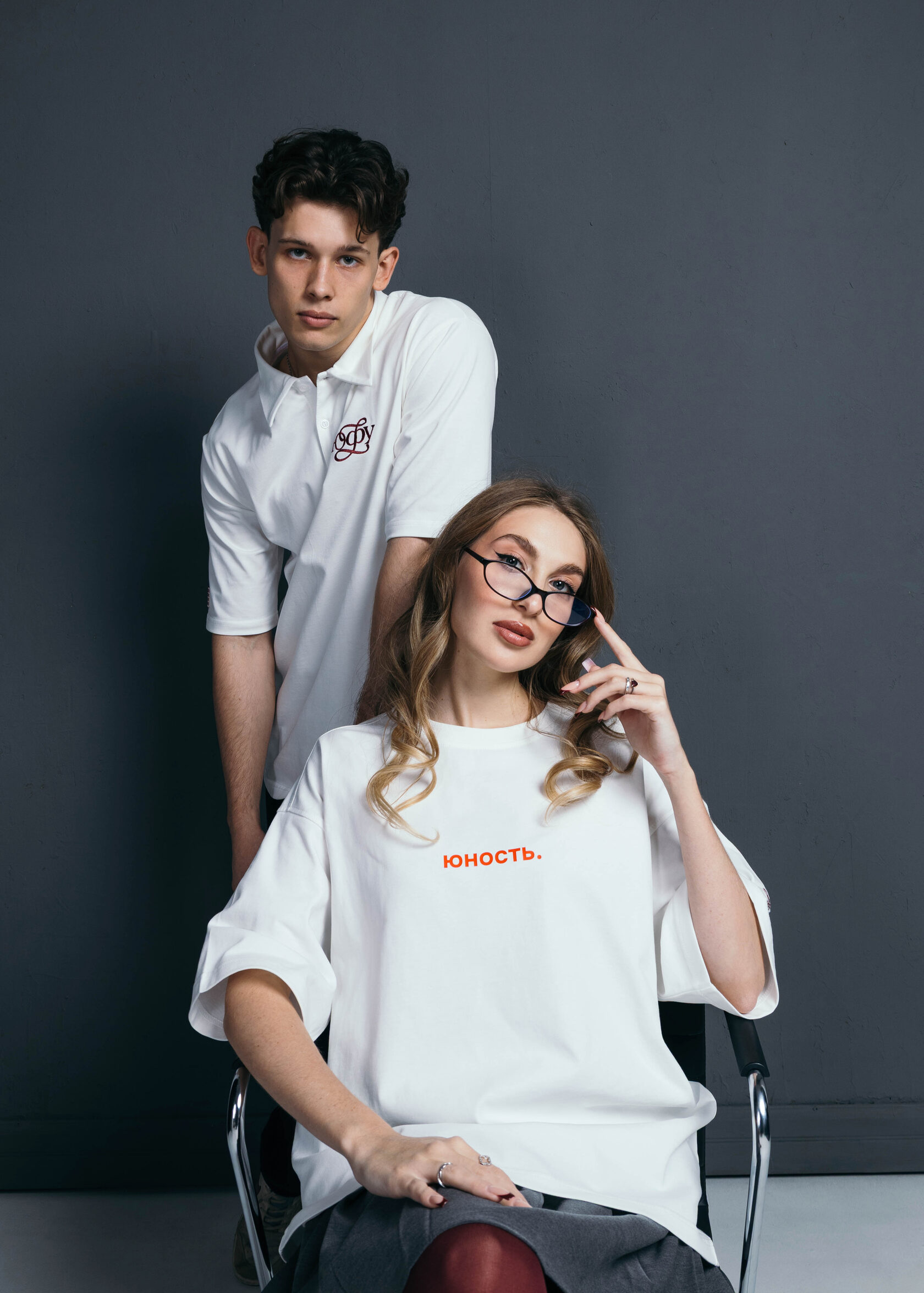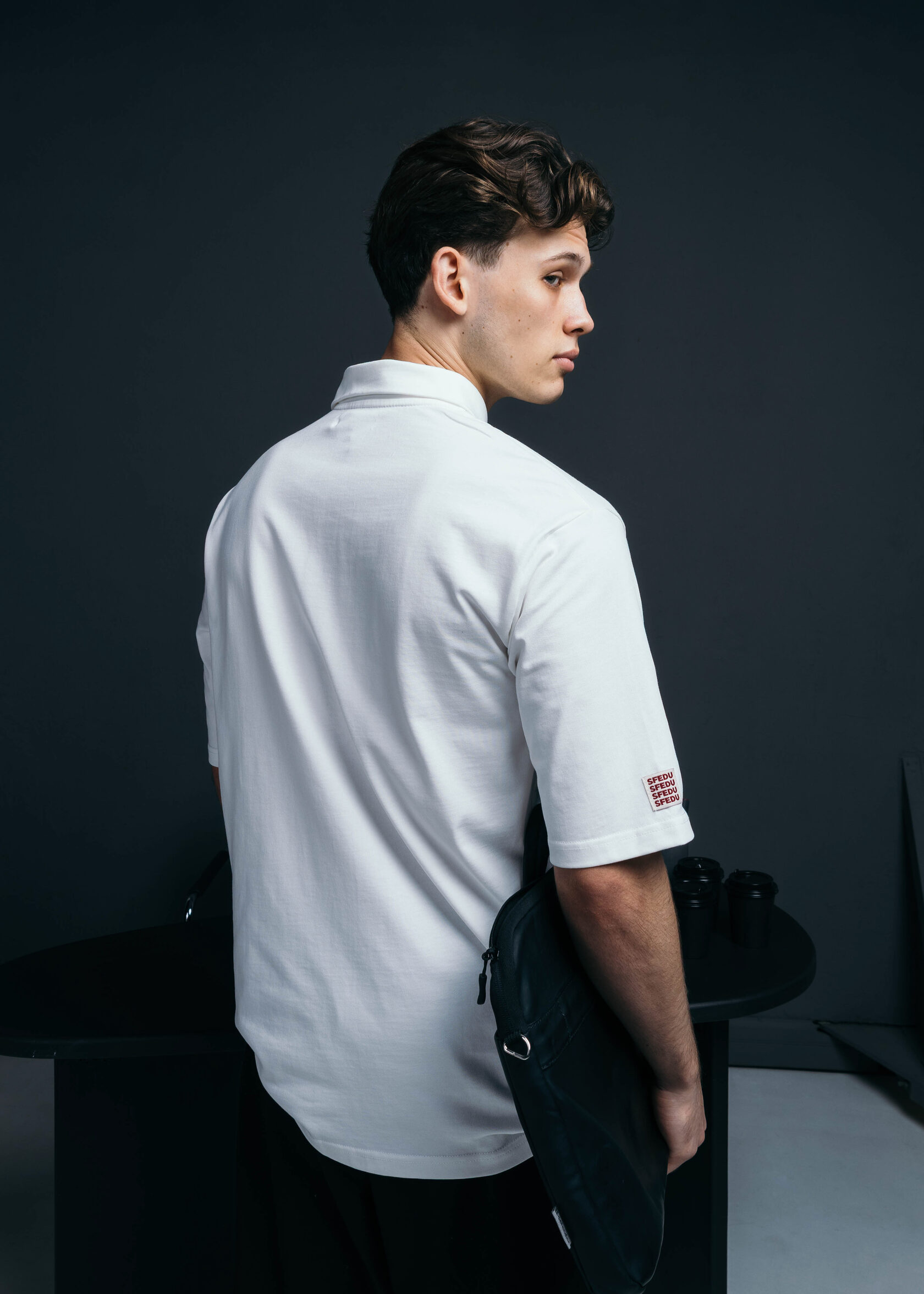 Молочная футболка, символизирующая студенчество и начало профессионального пути.