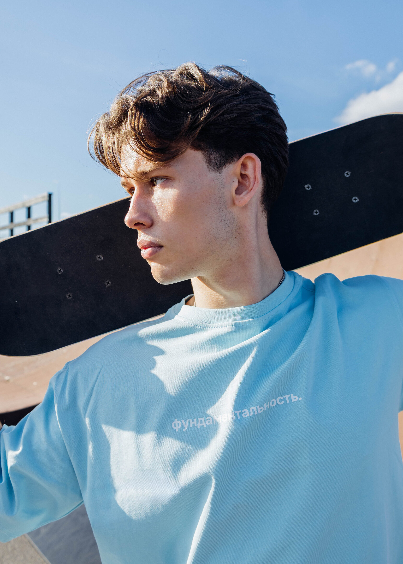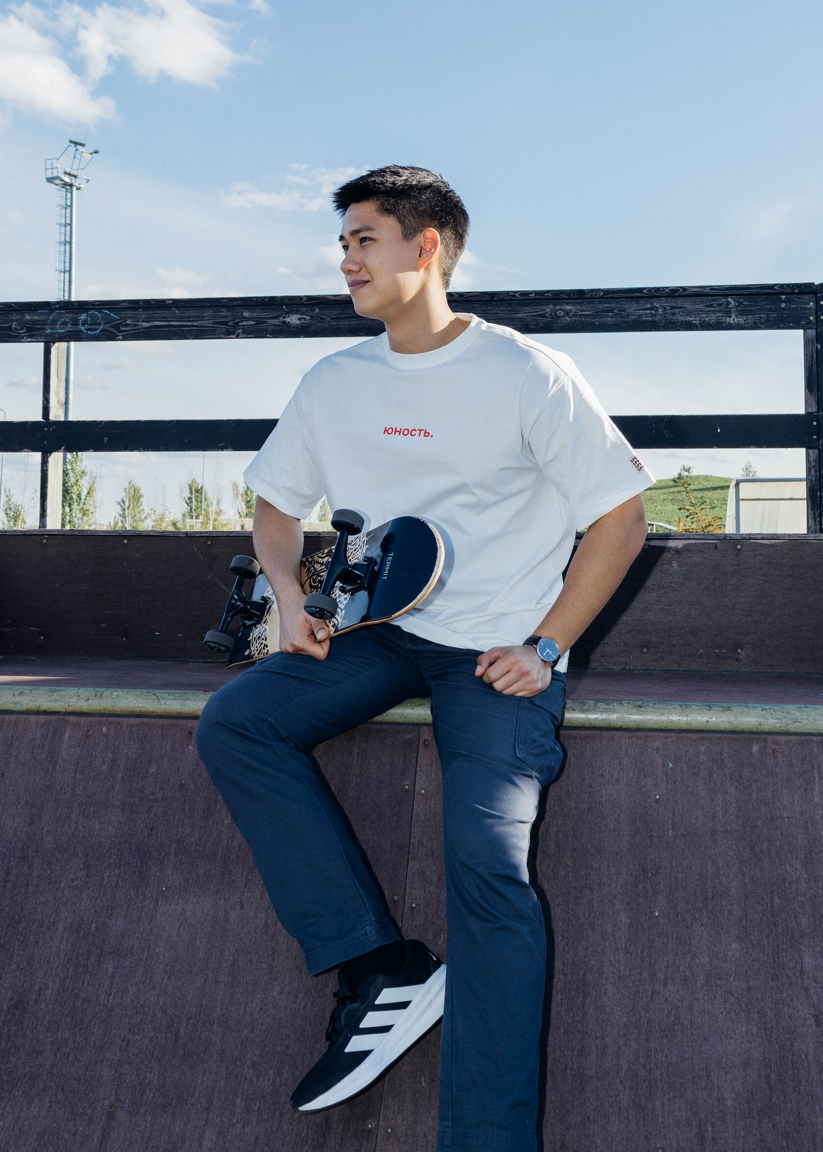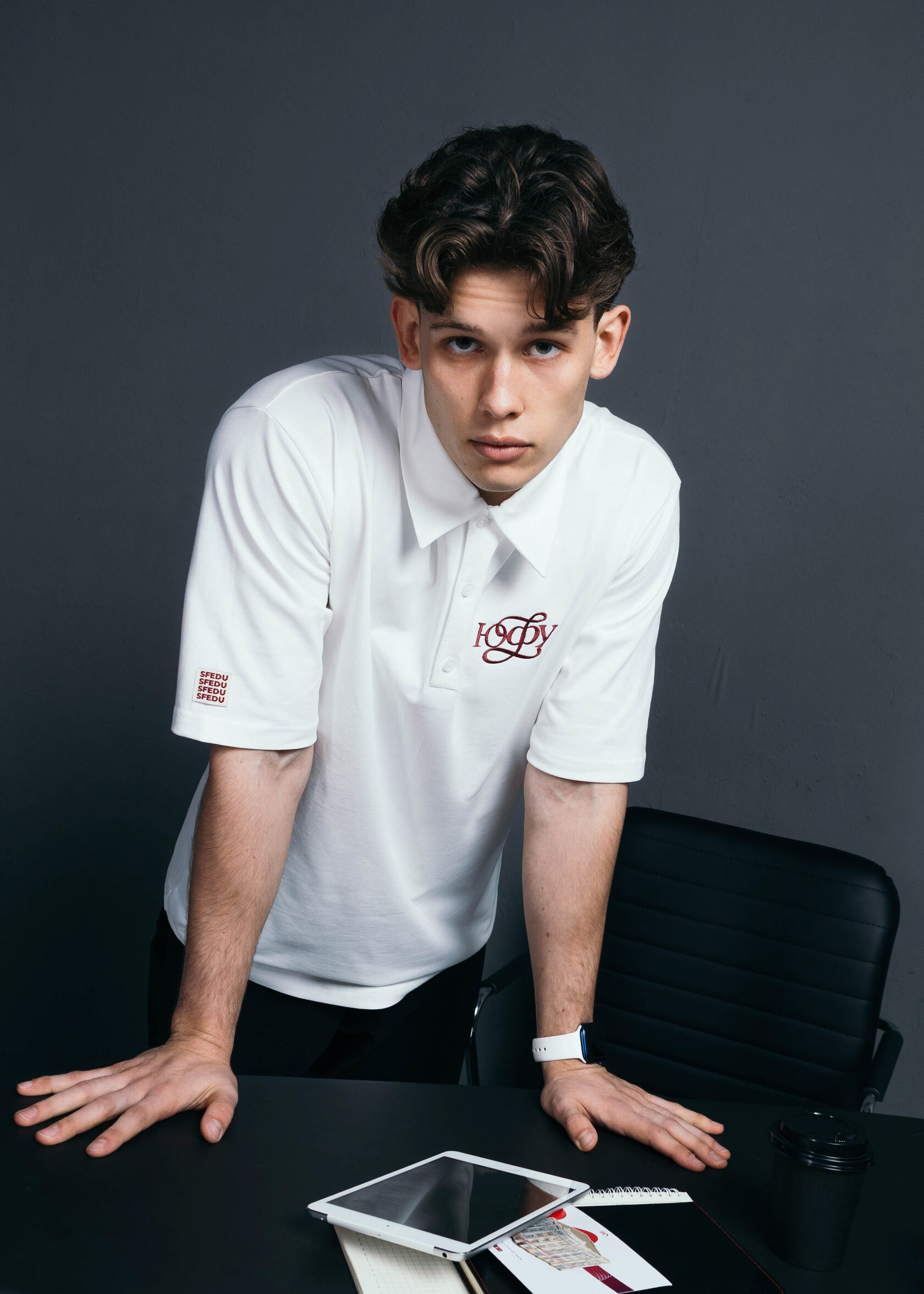 Молочная футболка, символизирующая студенчество и начало профессионального пути.
