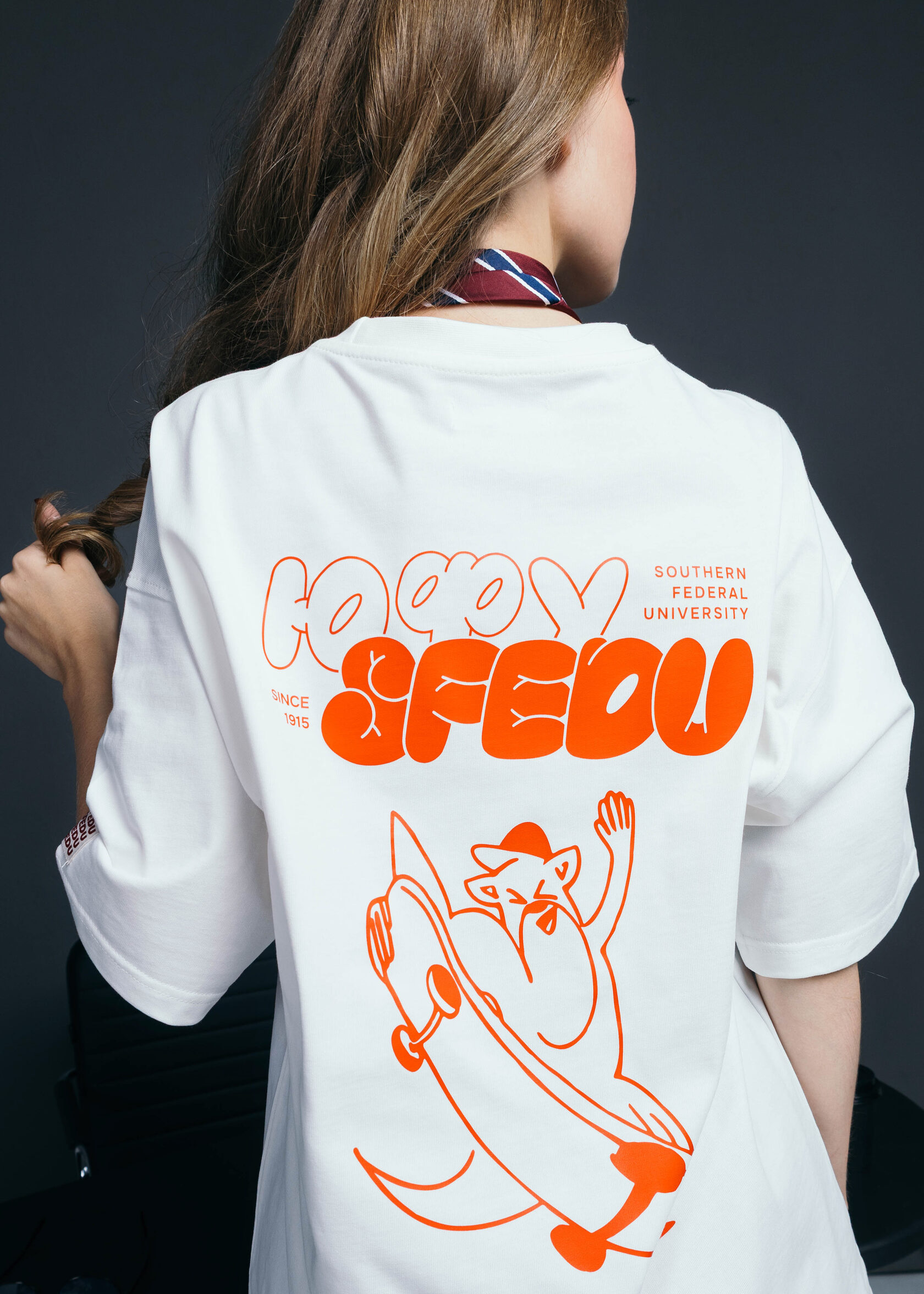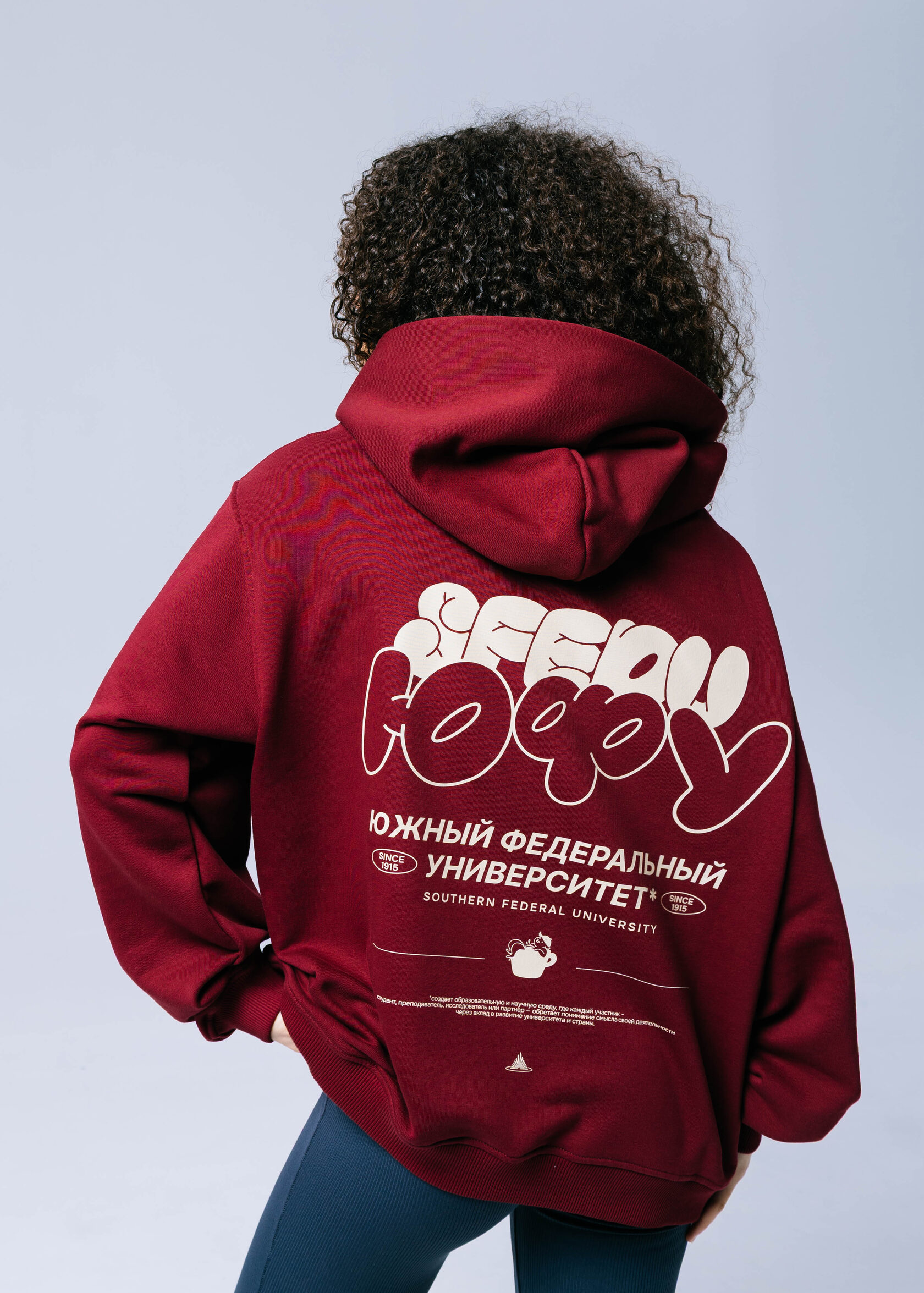 Университетская толстовка ЮФУ с фирменной биркой и акцентом на повседневный комфорт.