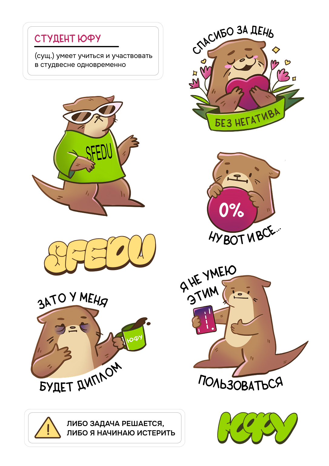 Объёмные наклейки ЮФУ с защитным покрытием. В наборе 7 стикеров