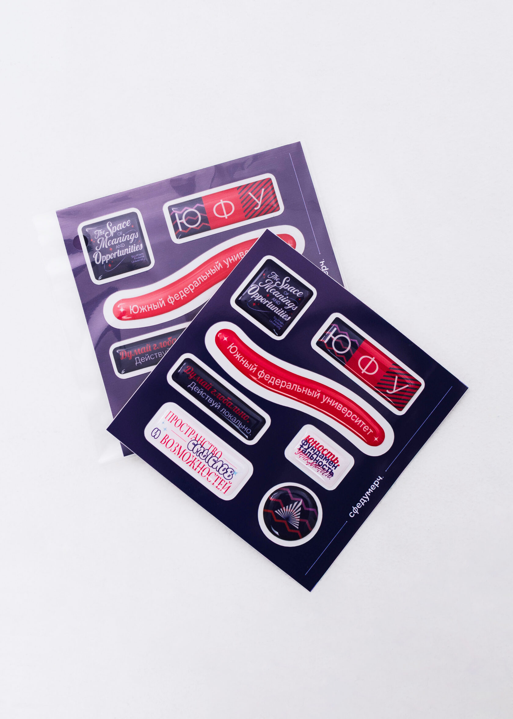 Объёмные наклейки ЮФУ с защитным покрытием.